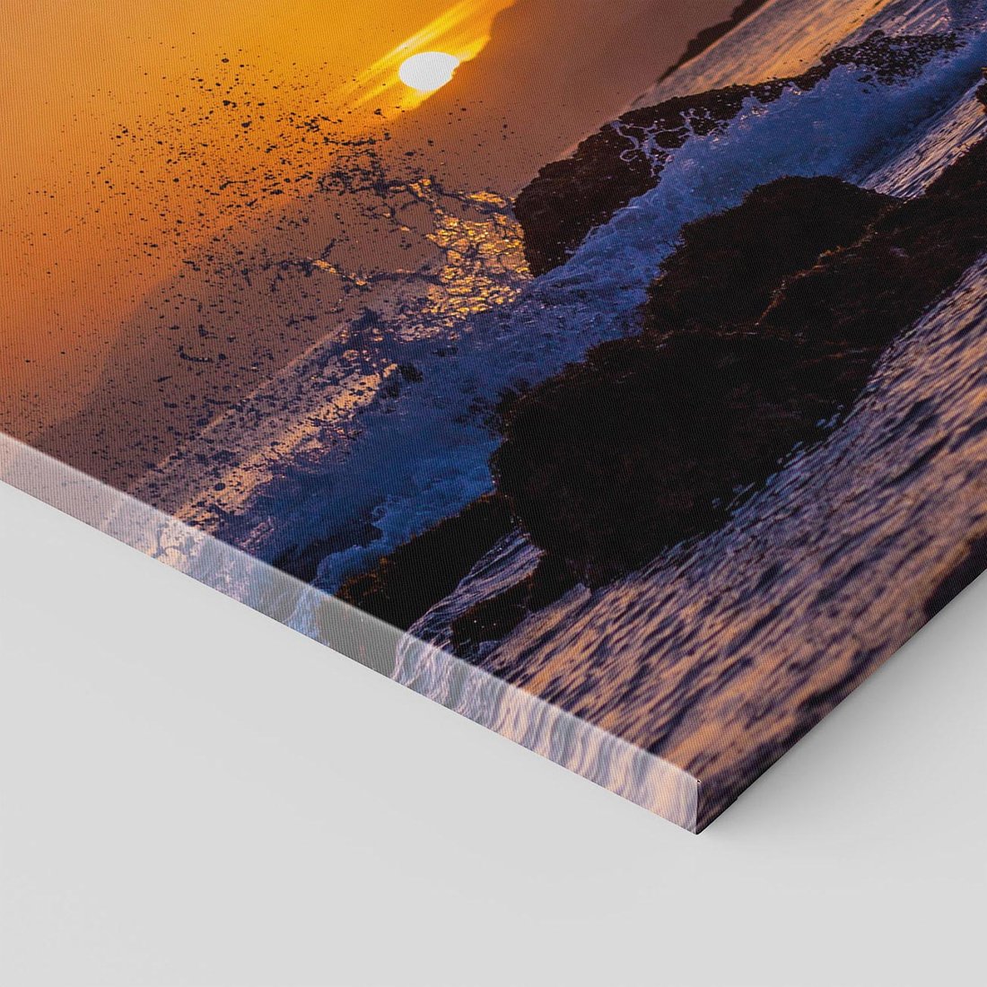 Ten urokliwy obraz ukazuje morską scenerię z rozbijającymi się falami na skalistym wybrzeżu. Przenieś się w momenty pełne energii i siły natury, czerpiąc inspirację z jej piękna i majestatu. Dodaj nutę morskiego uroku swojemu wnętrzu tym wyjątkowym obrazem.