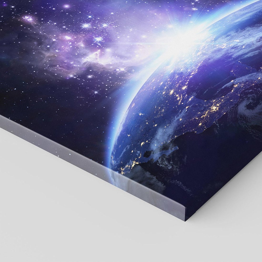 Przenieś się w nieskończoną przestrzeń kosmosu. Ten obraz przedstawia ziemię w otoczeniu gwiazd i tajemniczych galaktyk. Wprowadzi on mistycyzm i fascynację kosmosem do Twojego wnętrza, inspirując do wielkich podróży myślą.