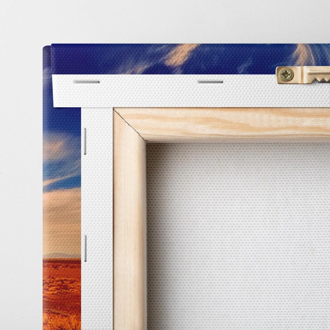 Obraz na płótnie przedstawiający malowniczą drogę prowadzącą przez pustynię. Ta dynamiczna kompozycja przyniesie do wnętrza energię i pasję podróży.