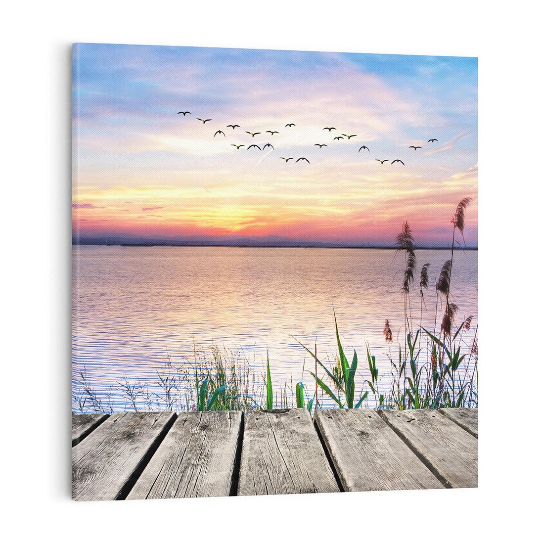 Obraz na płótnie 30x30 - Romantyczny zachód słońca nad morzem z ptakami - zachód, słońca