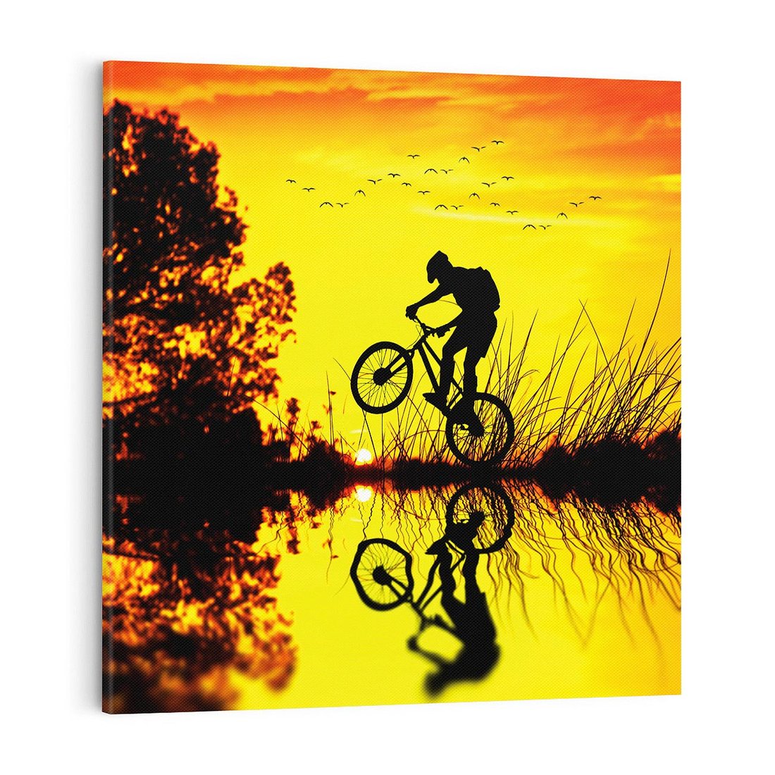 - Obraz na płótnie 30x30 - Rower przy zachodzie słońca