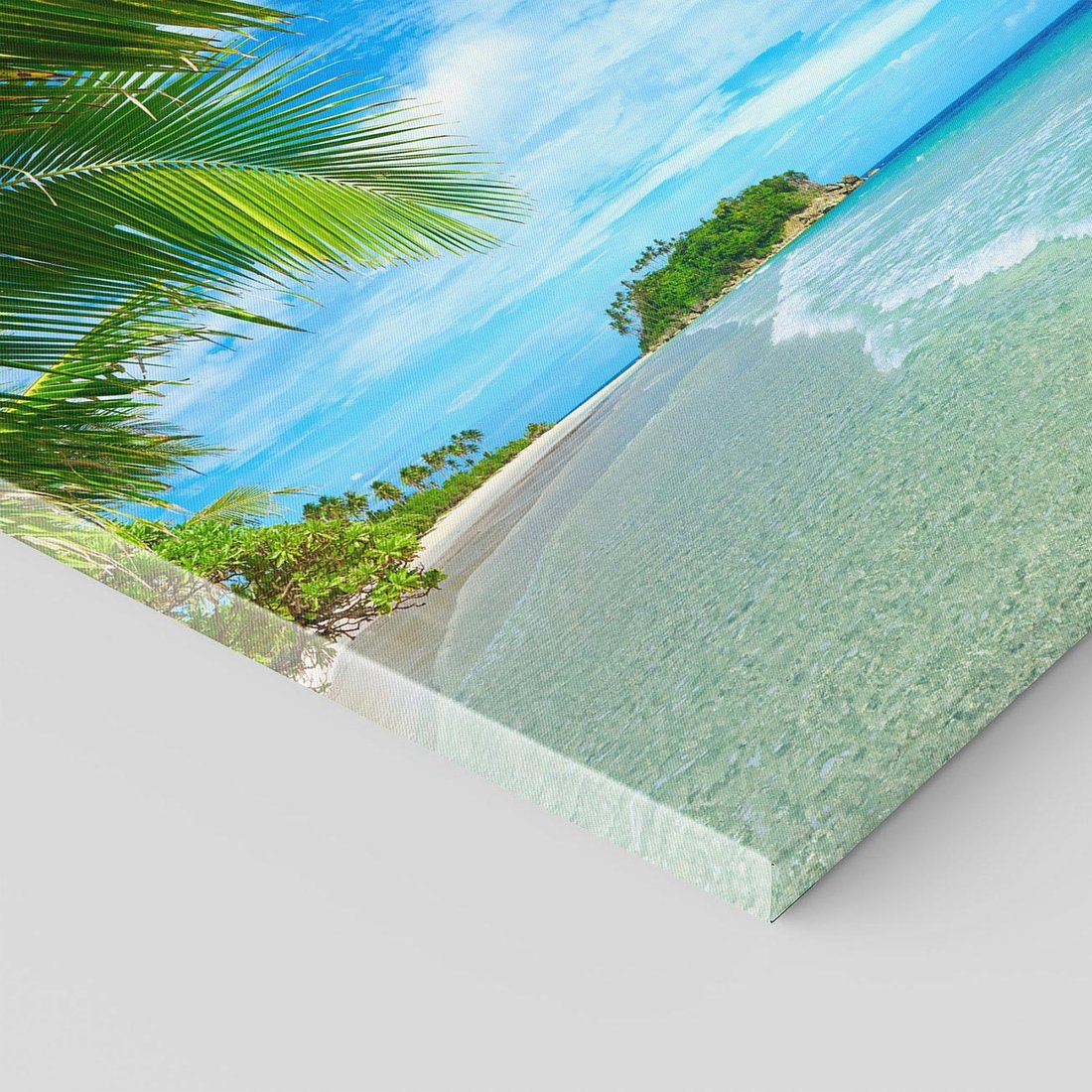 Ożyw swoje wnętrze tym kolorowym obrazem przedstawiającym tropikalną wyspę z plażą i palmami. Egzotyczne kolory, relaksujący widok i paradoksalne spokój tworzą rajską atmosferę. Ta kompozycja dodaje wakacyjnego klimatu i ucieczki od codzienności, idealna dla miłośników rajskich przygód i beztroskiego wypoczynku.