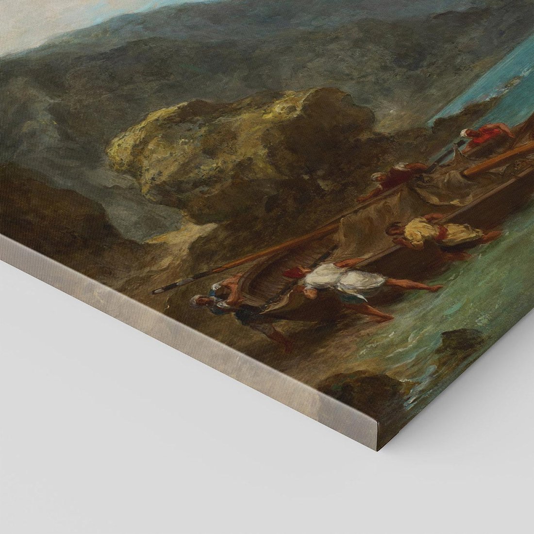 "View of Tangier from the Seashore" Eugène'a Delacroix to romantyczny pejzaż ukazujący marokańskie miasto Tangier widziane z brzegu morza. Delacroix użył żywych kolorów i mistycznego nastroju, aby uchwycić egzotyczną atmosferę miejsca. To dzieło jest przykładem jego fascynacji orientalizmem i egzotycznym krajobrazem.