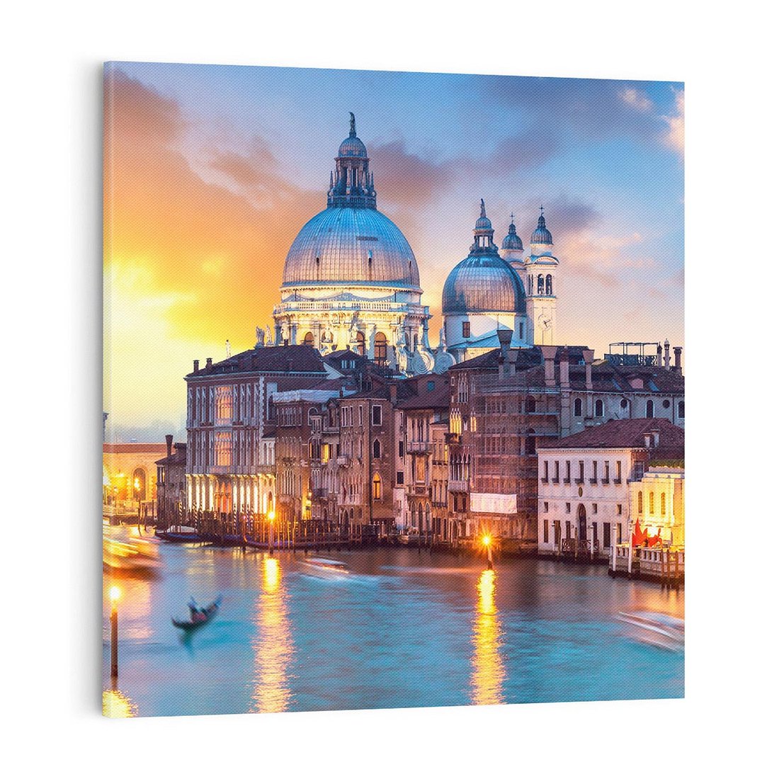 Przenieś się do romantycznego świata Wenecji dzięki temu malowniczemu obrazowi przedstawiającemu miasto zakochanych. Wąskie kanały, kolorowe fasady i romantyczne gondole tworzą niepowtarzalną aurę. Ten obraz dodaje romantyzmu i włoskiego uroku, idealny dla miłośników podróży, historii i romantycznych chwil.