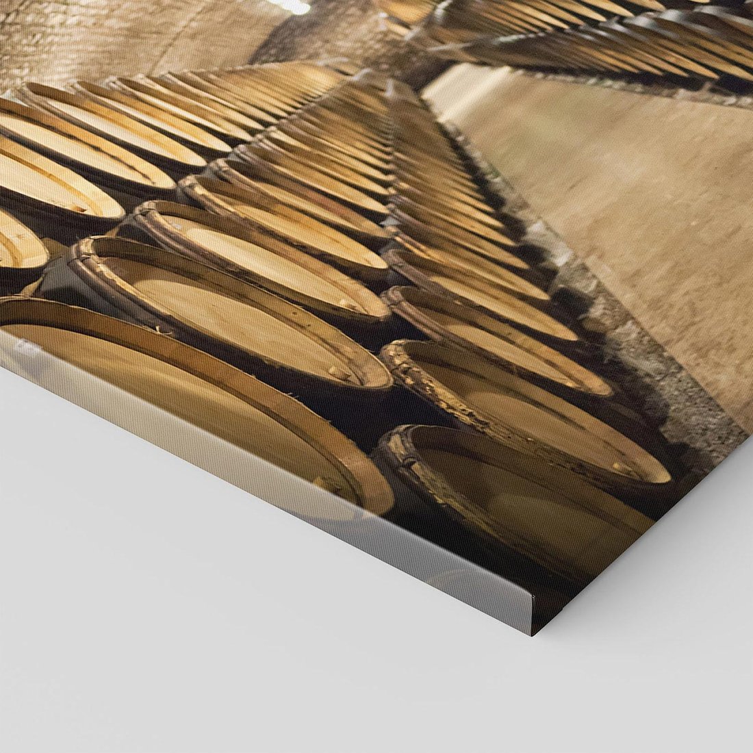 Przenieś się do urokliwej winnicy dzięki temu pięknemu obrazowi. Winnice, beczki i butelki z winem tworzą aurę smaku i tradycji. Ta kompozycja dodaje elegancji i romantyzmu, idealna dla miłośników wina i wiejskiego klimatu.