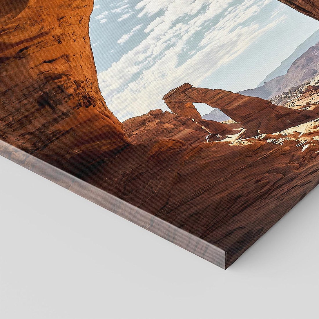 Ten obraz na płótnie przedstawia pejzaż pustynnego kanionu, emanującego tajemniczością i majestatem natury. Jego piękne odcienie i kontrasty tworzą atmosferę podróży i odkrywania. Doskonały wybór dla miłośników pejzażowych motywów i egzotycznego uroku.