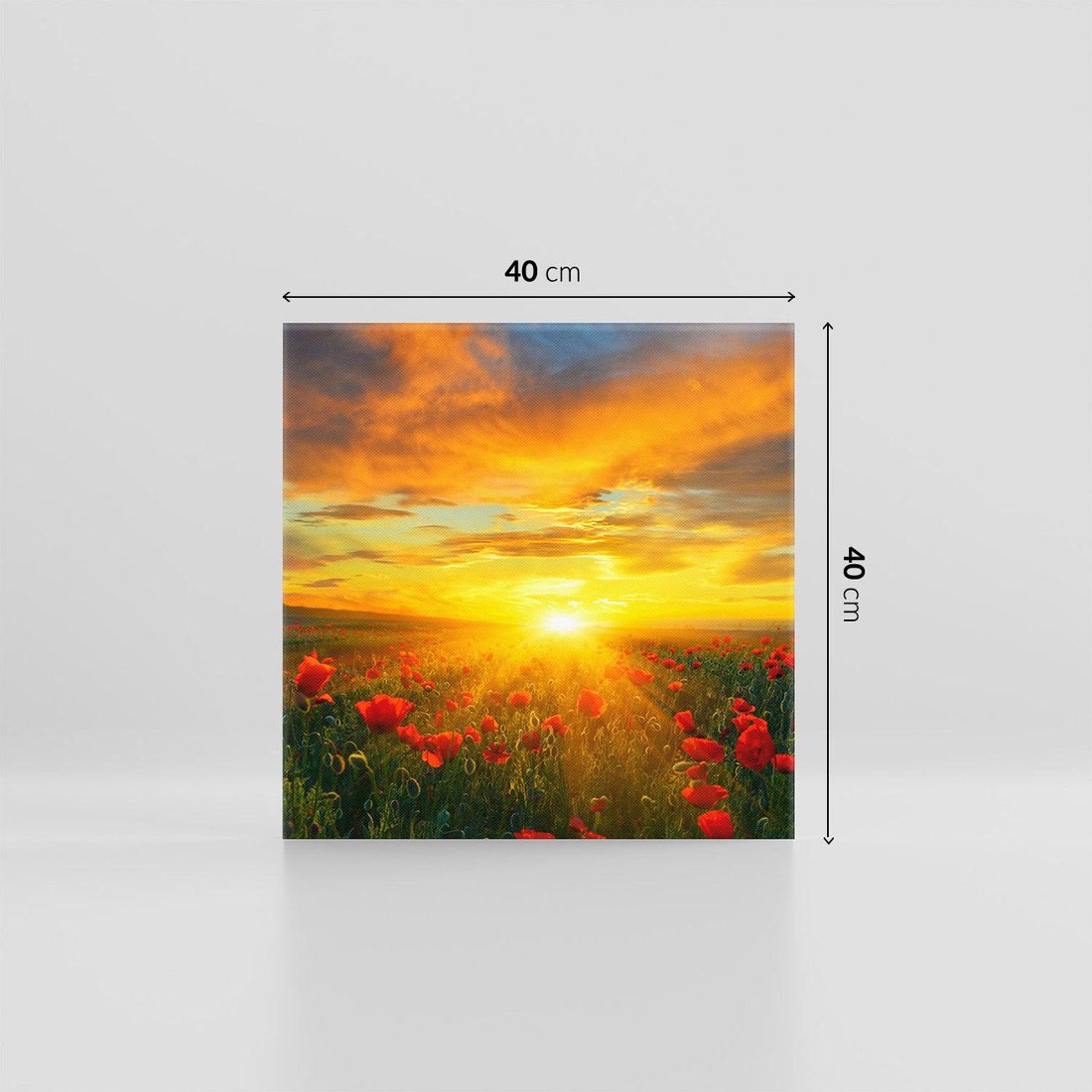 - Obraz na płótnie 40x40 - Magia zachodu słońca na łące z makami