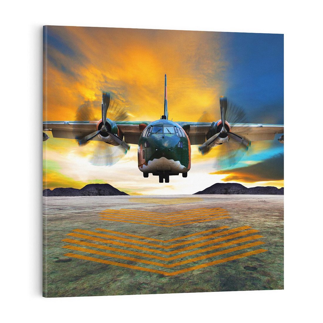 - Obraz na płótnie 40x40 - Moc wojskowego transportu: Samolot na misji