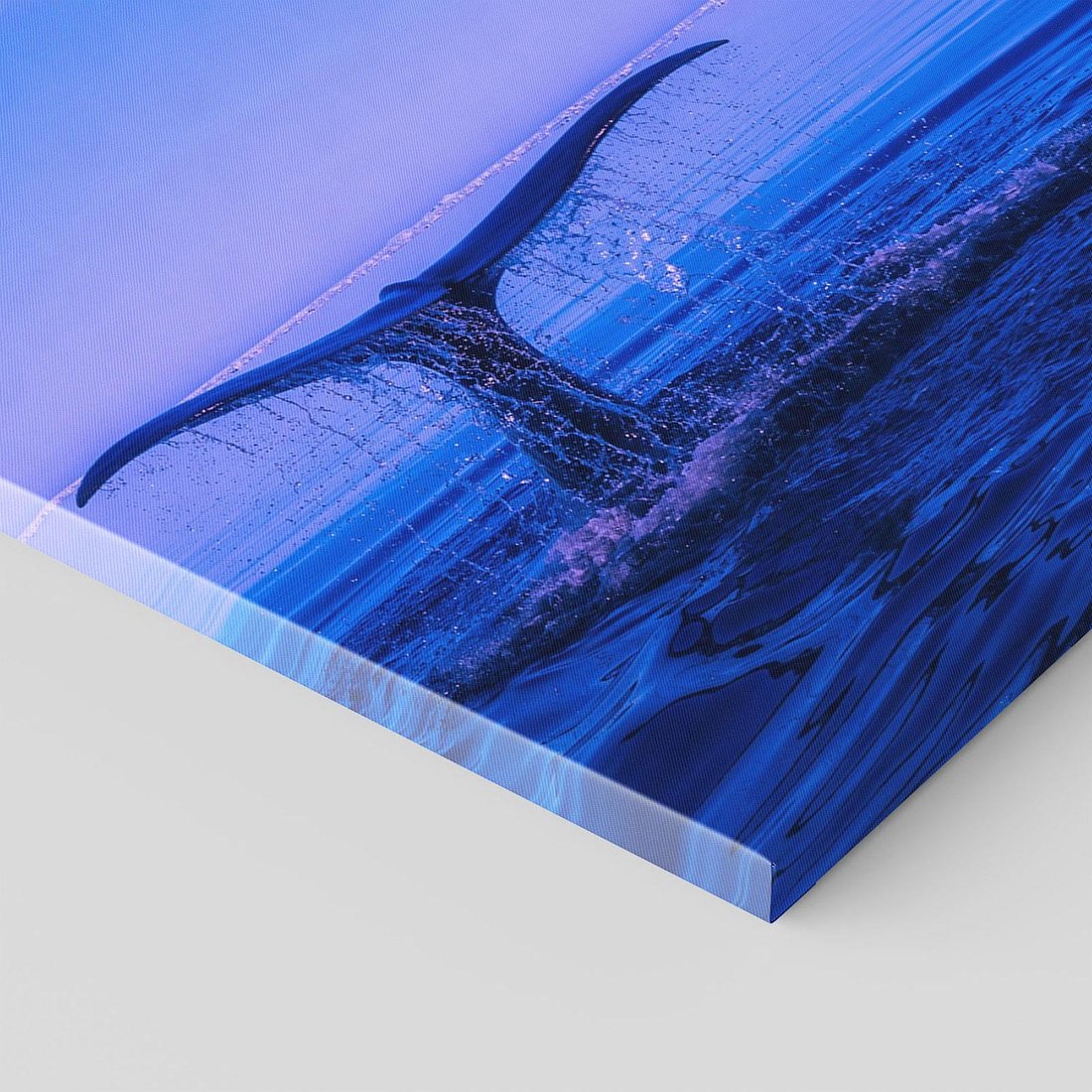 Ten malowniczy obraz ukazuje majestatycznego wieloryba unoszącego się nad szerokim oceanem. Przenieś się w świat tajemnic i siły tych wspaniałych morskich stworzeń. Dodaj nutę egzotyki i fascynacji przyrodą swojemu wnętrzu tym wyjątkowym dziełem sztuki.