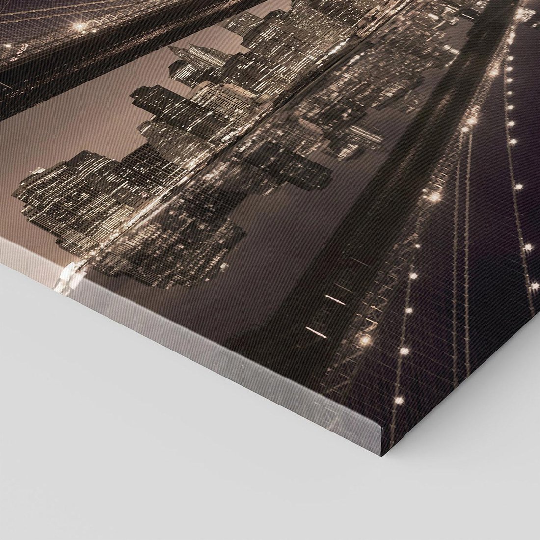 Przeniknij w atmosferę nocnego miasta dzięki temu uroczemu obrazowi przedstawiającemu most na horyzoncie. Z oświetlonymi latarniami i dynamicznym miastem, tworzy atmosferę tajemnicy i podróży w nieznane. Ta kompozycja dodaje wyrazu i miejskiego klimatu, idealna dla miłośników nocnych pejzaży i wielkomiejskiego stylu.