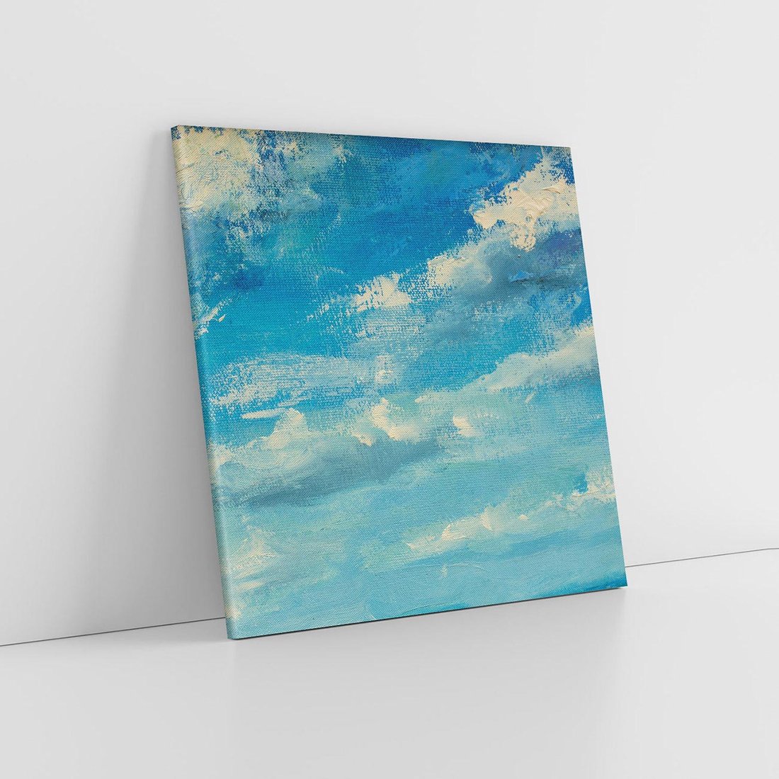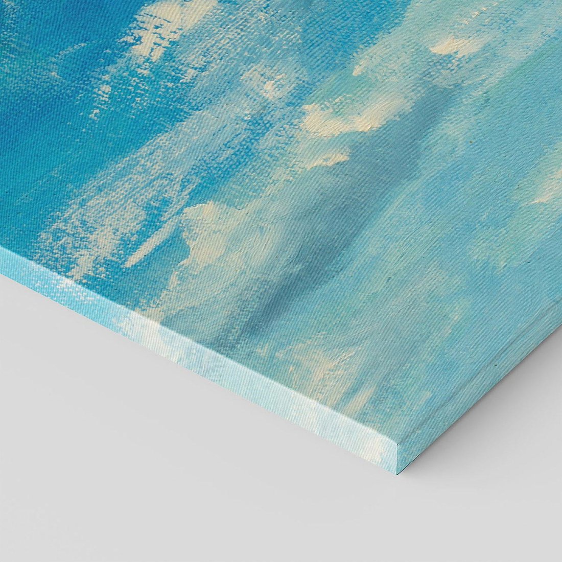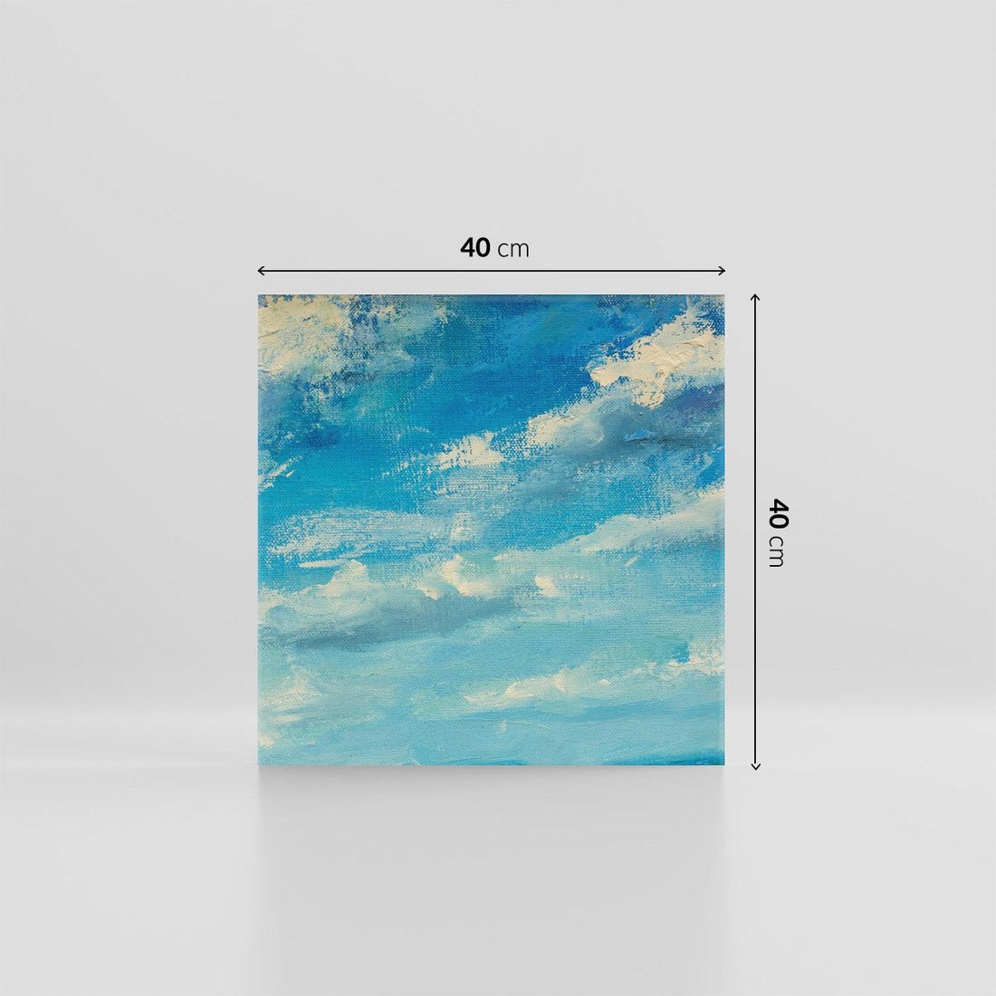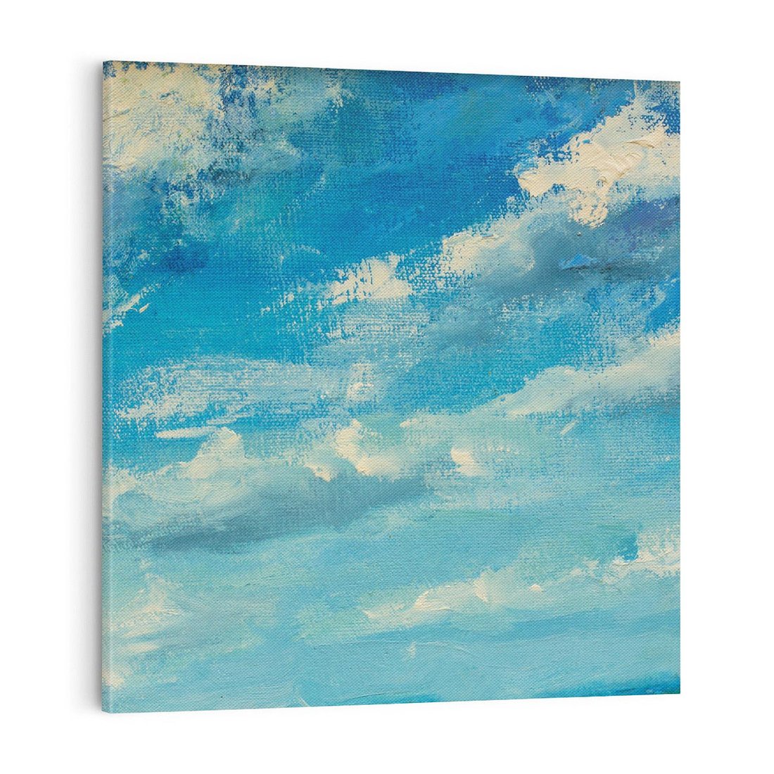 Obraz na płótnie 40x40 - Oddechy niebiańskiej materii - olejny obraz, smugi farby przypominają obłoki na błękitnym niebie
