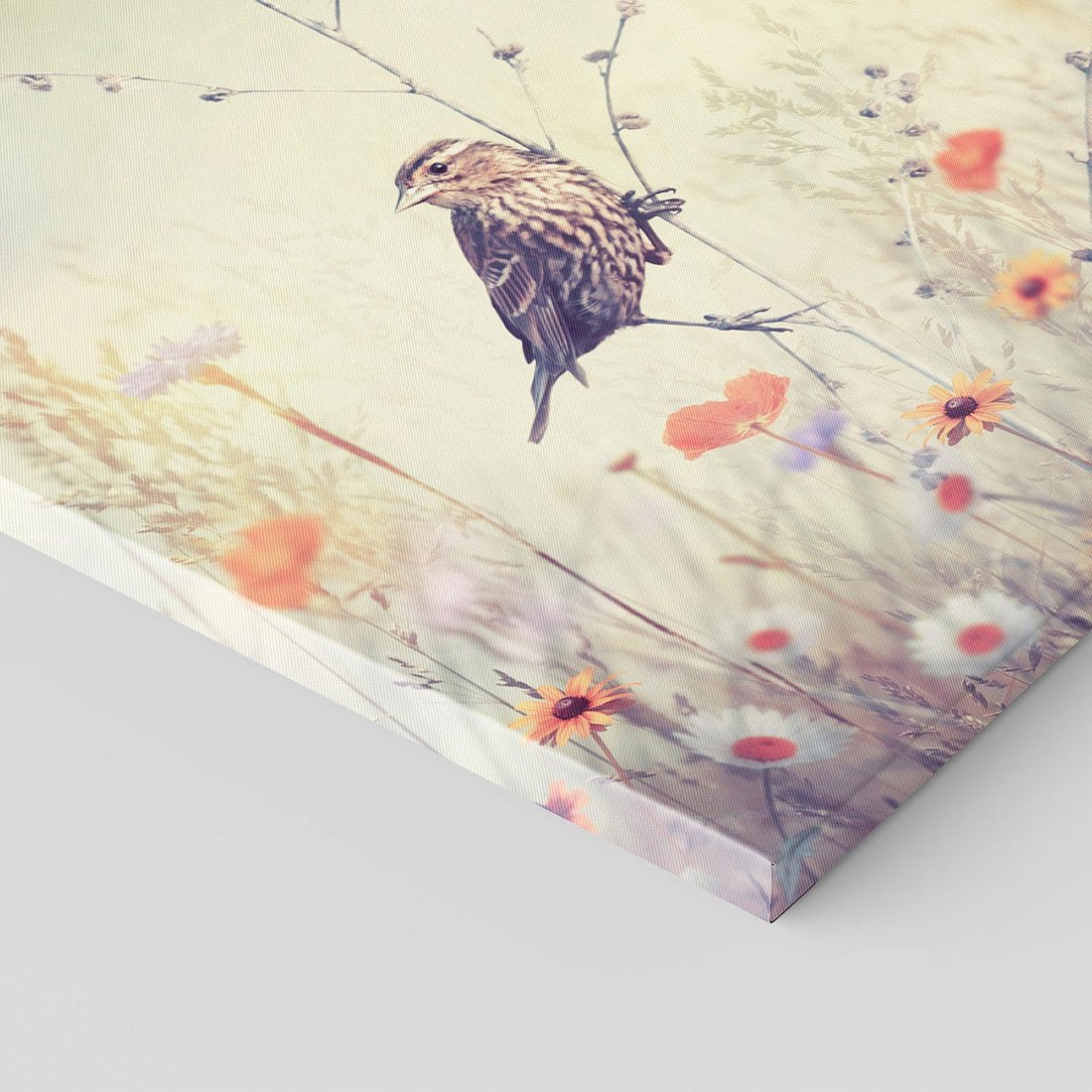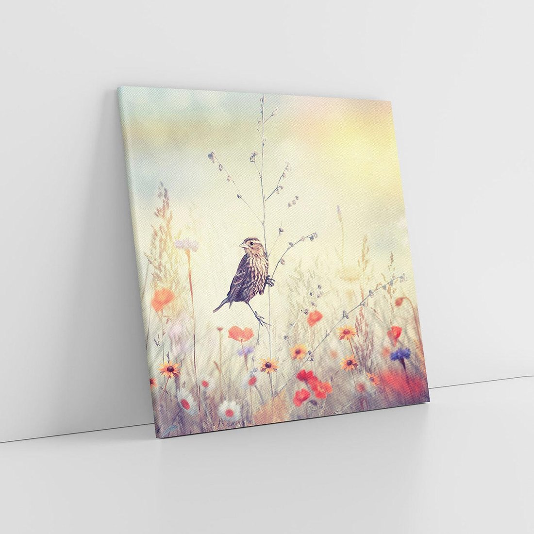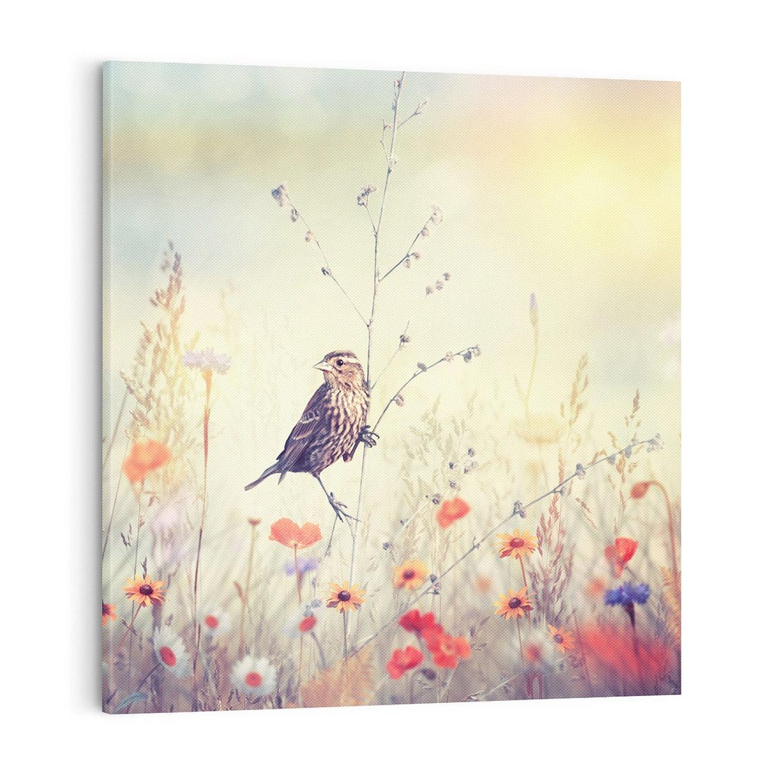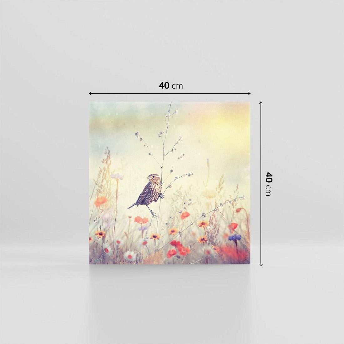 Obraz na płótnie 40x40 - Poranek wśród łąki - ptak, łąka
