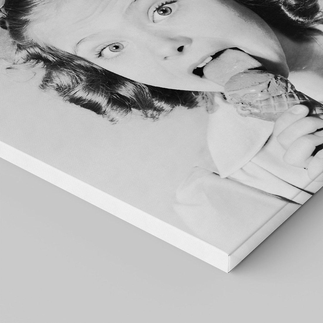 To urocze retro zdjęcie w czerni i bieli ukazuje dziewczynkę, która z apetytem delektuje się lodem. Ten nostalgiczny obraz przenosi nas do minionych czasów i emanuje urokiem i beztroską dzieciństwa. Styl retro nadaje temu zdjęciu wyjątkowego uroku, sprawiając, że staje się ono nie tylko zdjęciem, ale również podróżą w czasie do lat, które budzą sentyment i ciepłe wspomnienia. To idealny dodatek do wnętrza, który przywołuje atmosferę przeszłości i dodaje uroku każdemu pomieszczeniu.