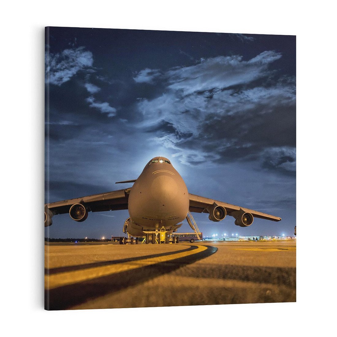 Ten obraz na płótnie przeniesie Cię w świat podniebnej wolności. Przywołaj emocje podróży i dreszczyk emocji związany z lataniem na tym niezwykłym obrazie, przedstawiającym samolot na tle lotniska. Dodaj swojemu wnętrzu dynamiki i inspiracji.