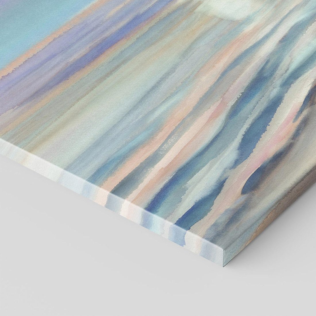 Ta akwarela przedstawia zamglony wschód słońca, gdzie chłodne pastelowe kolory nadają delikatną aurę porannej mgły. Ta spokojna podróż w czasie przenosi nas w urokliwą chwilę, gdy świat budzi się w miękkim blasku poranka.