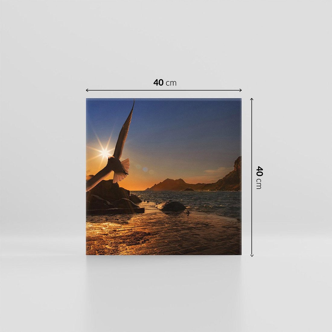 - Obraz na płótnie 40x40 - Zachód słońca nad morzem z mewą