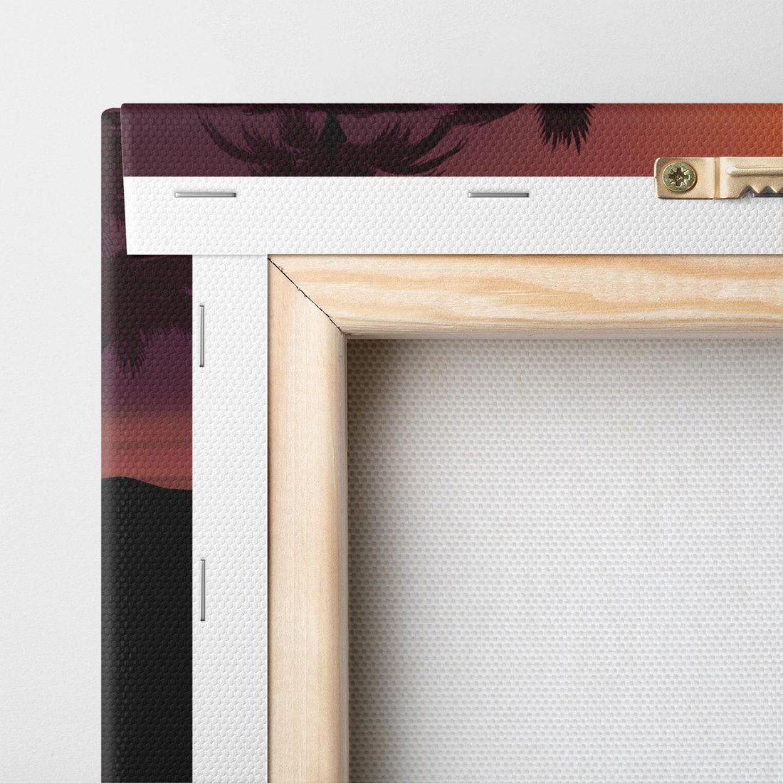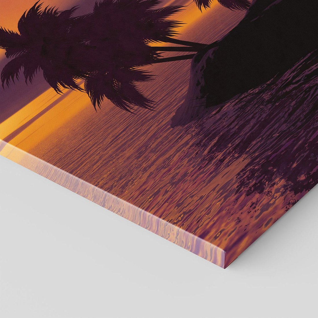 Ten magiczny obraz przedstawia zachód słońca nad morzem, a palmy dodają egzotycznego charakteru krajobrazowi. Ciesz się widokiem romantycznego zachodu słońca i dodaj nutę tropikalnego uroku i spokoju do swojego wnętrza tym wyjątkowym obrazem.