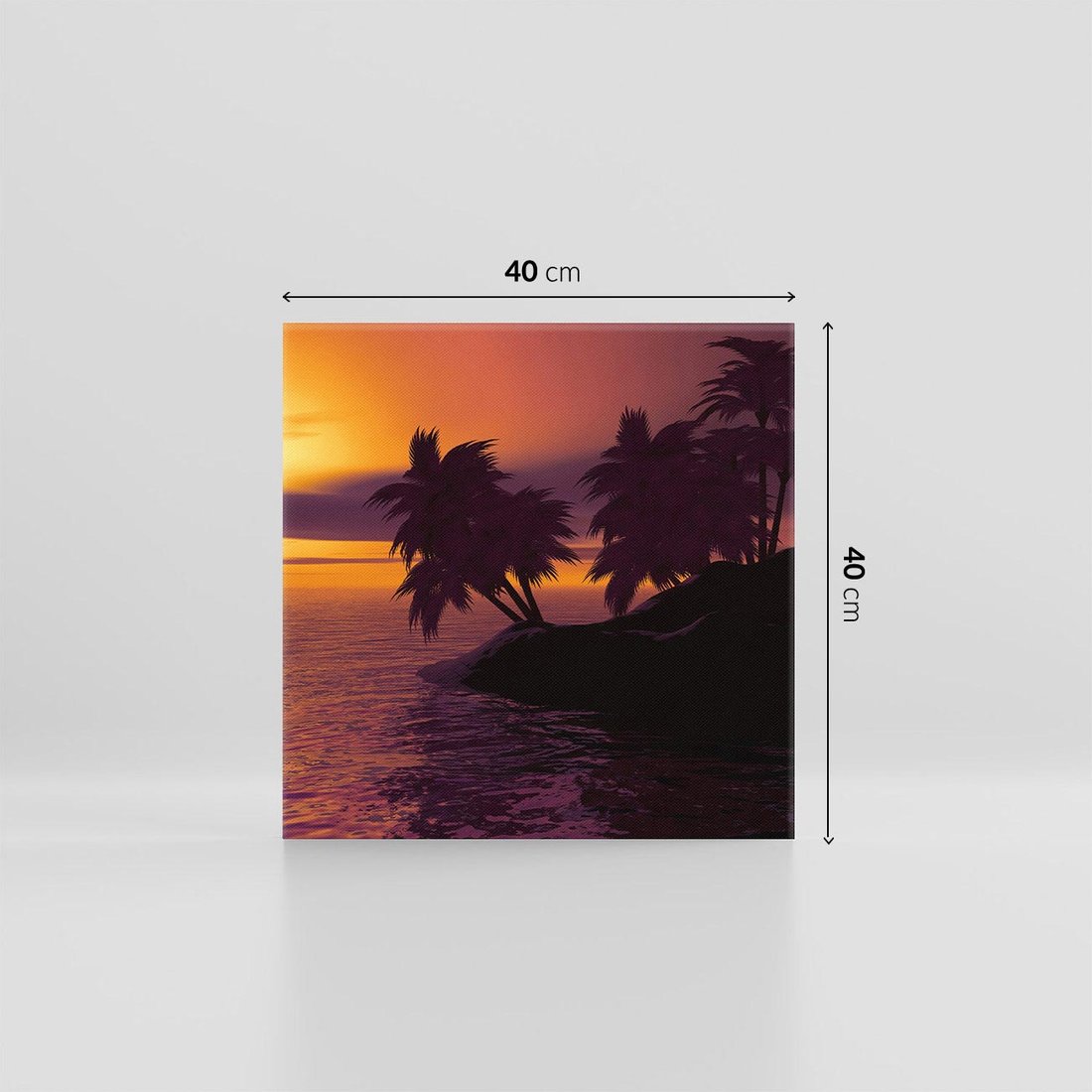 - Obraz na płótnie 40x40 - Zachód słońca - Palmy nad morzem