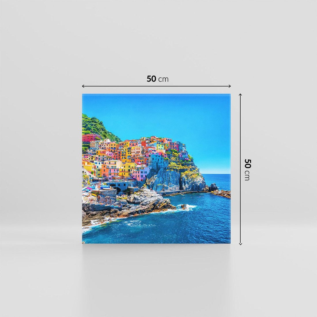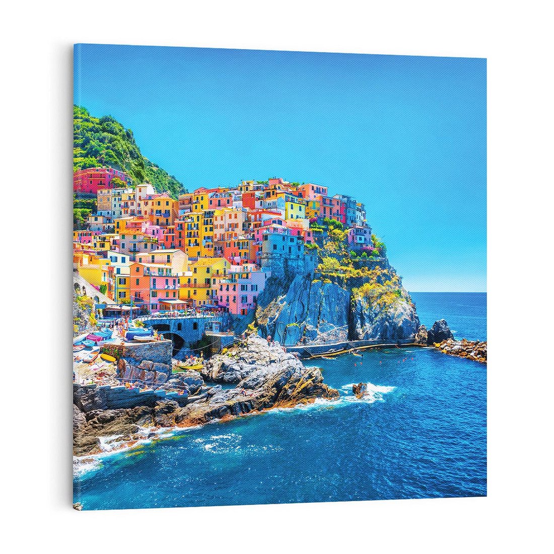 Obraz na płótnie 50x50 - Barwne Wybrzeże - nadmorskie miasto na klifie, kolorowe tęczowe budynki
