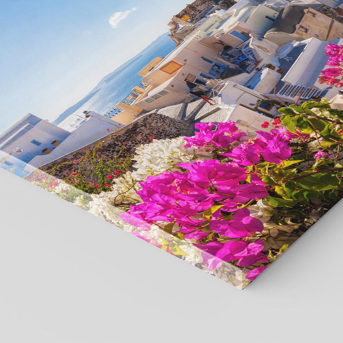 Przenoś się do malowniczego Santorini dzięki temu uroczemu obrazowi przedstawiającemu wyspę. Błękitne morze, białe domy i romantyczne krajobrazy tworzą wyjątkową kompozycję. Ten obraz dodaje radości i sielskiego uroku, idealny dla miłośników Grecji i czarujących wysp.
