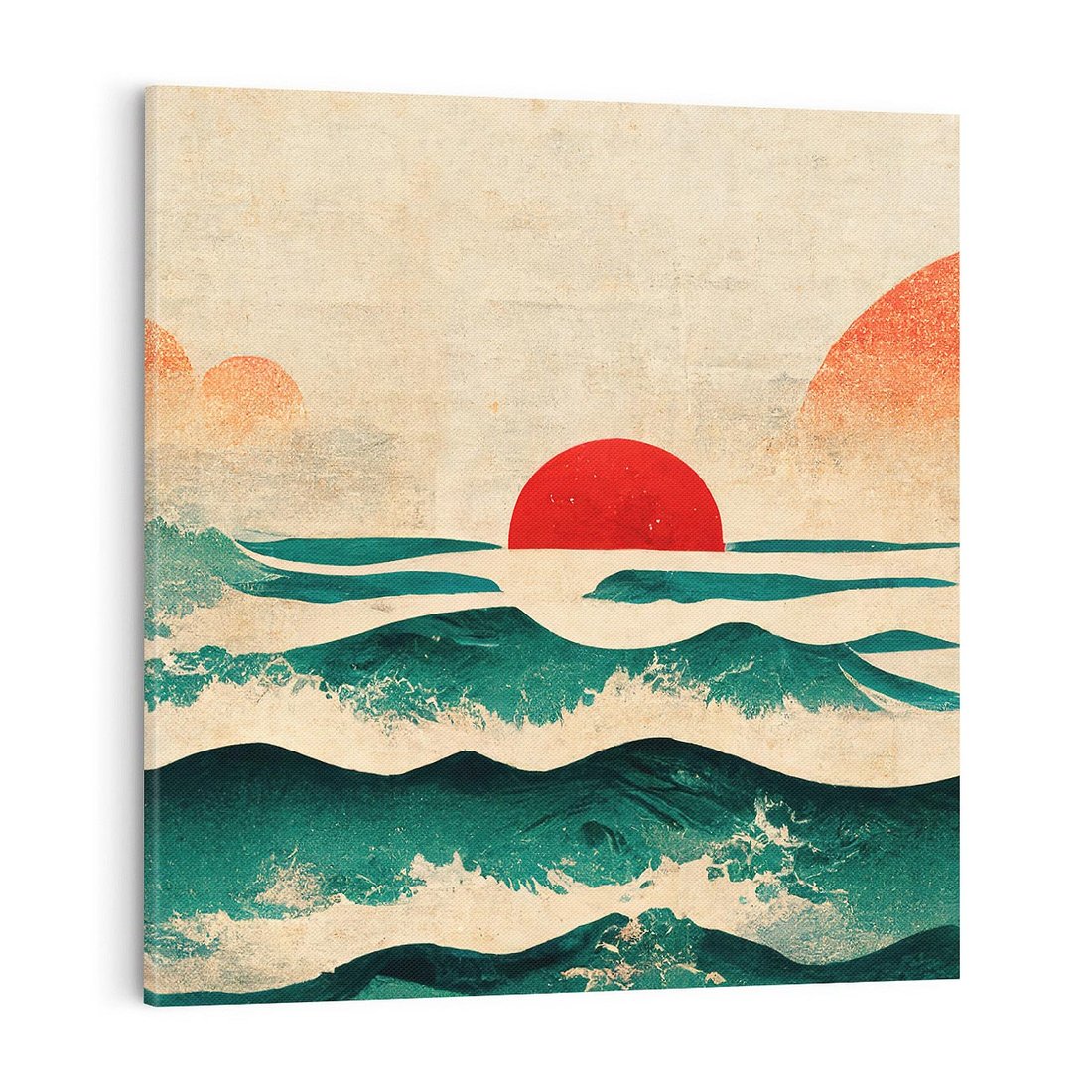 Obraz na płótnie 50x50 - Czerwone Melodie - japońska sztuka, zachód słońca nad oceanem