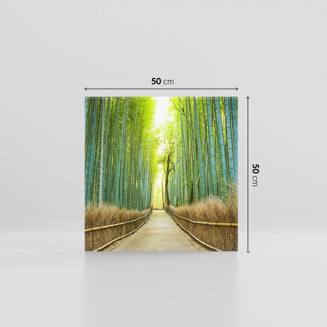 Odkryj tajemniczy świat japońskiego bambusowego lasu dzięki temu malowniczemu obrazowi przedstawiającemu drogę. Gęste bambusy, naturalne światło i spokojna atmosfera tworzą harmonijną aurę. Ta kompozycja dodaje zen i natury, idealna dla miłośników japońskiej estetyki i spokoju w swoim otoczeniu.