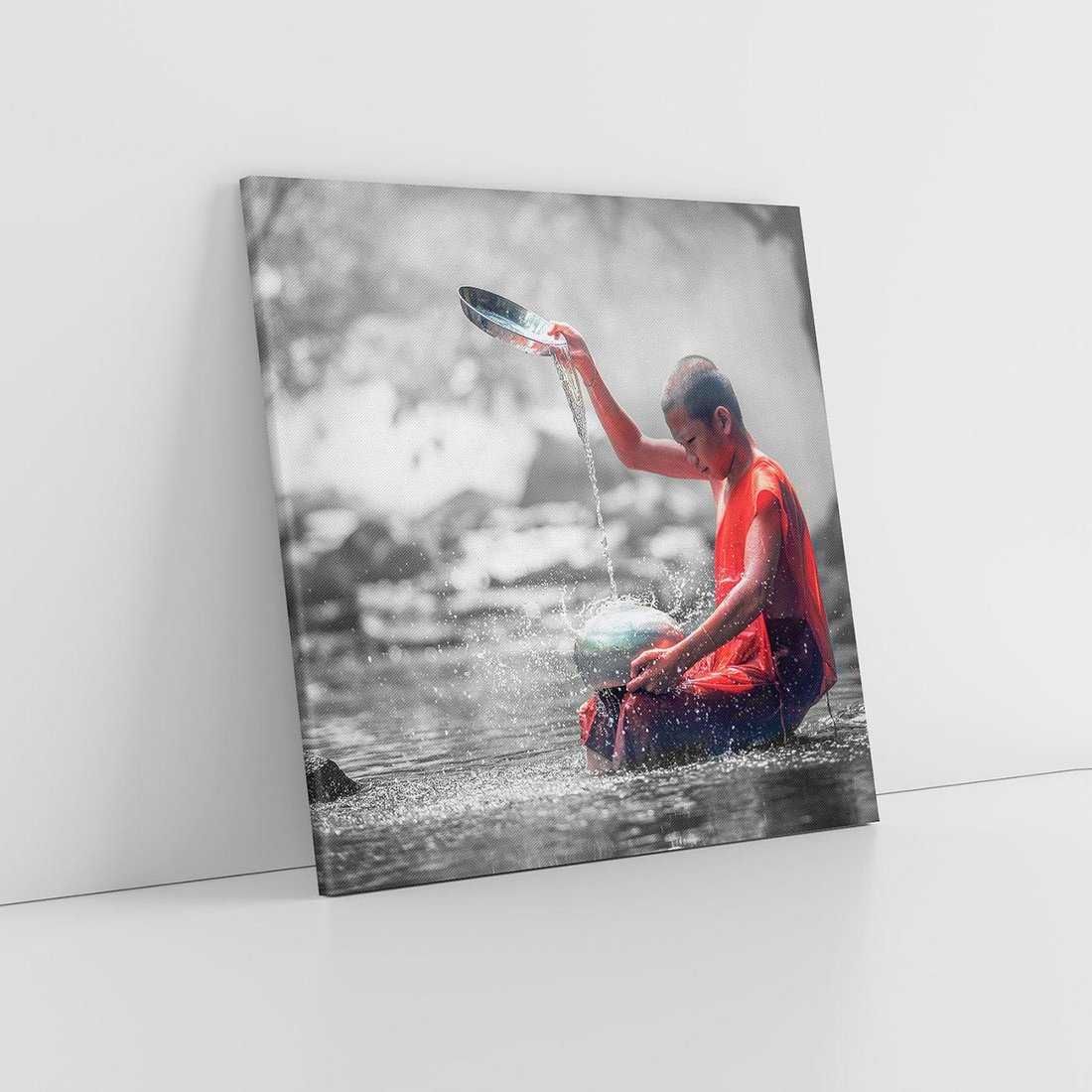 Przywołaj uśmiech na twarzach swoich bliskich dzięki temu obrazowi na płótnie przedstawiającemu urocze dziecko mnicha. Ta niezwykła kompozycja artystyczna emanuje spokojem i niewinnością, przypominając o wartościach, które są najważniejsze w życiu.