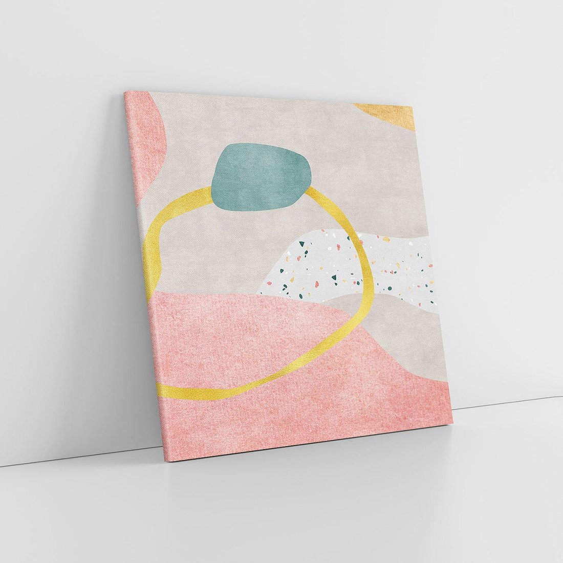 Odkryj fascynujący obraz abstrakcji, łączący kształty i dziwne formy, które harmonijnie współgrają z różnymi teksturami, przypominającymi lastryko. Złote akcenty subtelnie podkreślają różowy i szary kolor. To wyjątkowe dzieło stworzone dla miłośników sztuki poszukujących unikalnych kompozycji, które wzbudzą ciekawość i zachwyt. Doskonały dodatek do nowoczesnych i ekskluzywnych wnętrz.