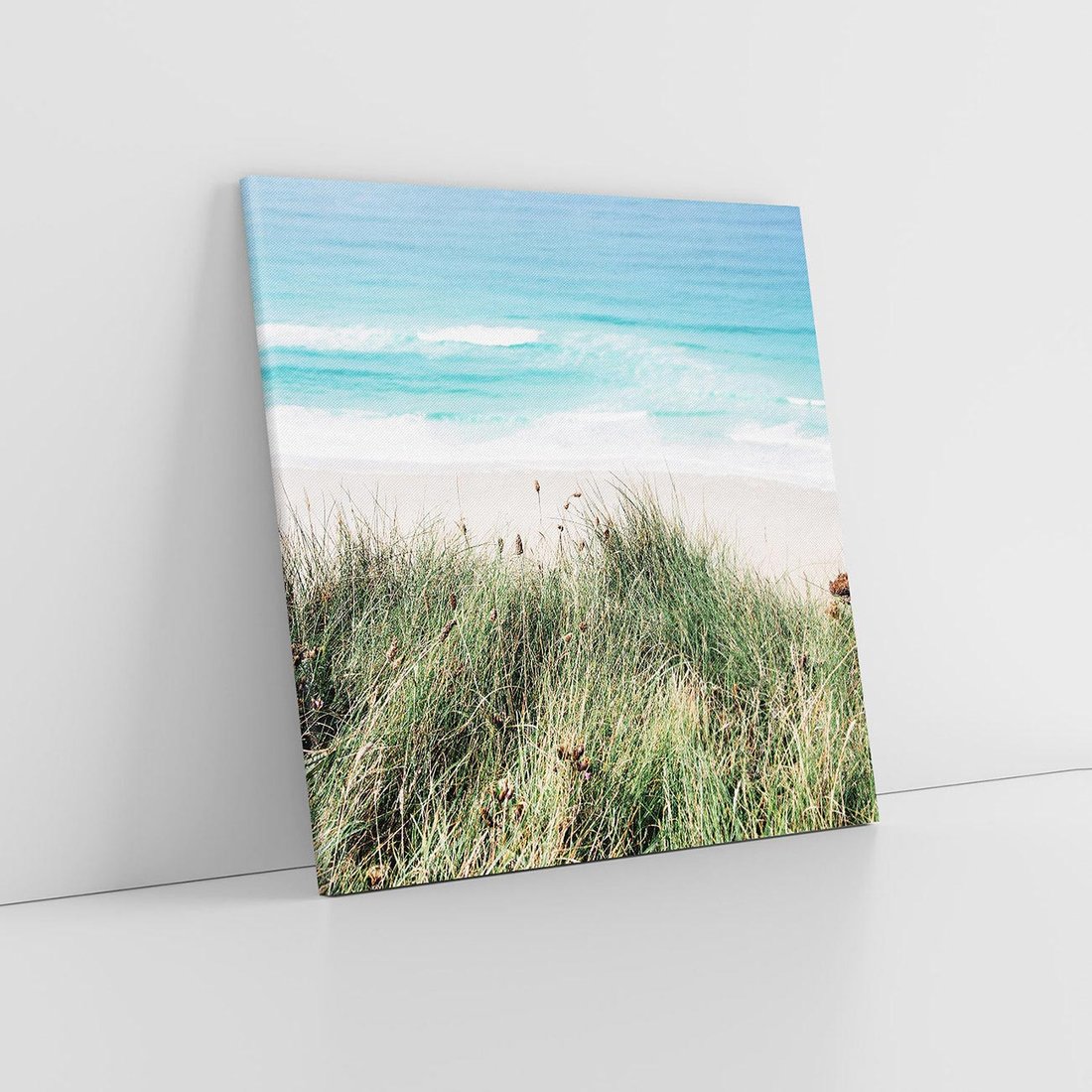 Obraz na płótnie 50x50 - Harmonia Natury - widok z wydm, wydmy porośnięte trawami