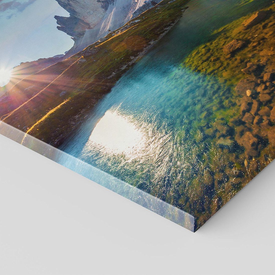 Odkryj spokój jeziora otoczonego majestatycznymi górami dzięki temu uroczemu obrazowi. Z odbiciem krajobrazu i przyjemnym nastrojem, tworzy atmosferę harmonii i natury. Ta kompozycja dodaje wyjątkowego piękna i relaksu, idealna dla miłośników przyrody i wypoczynku.