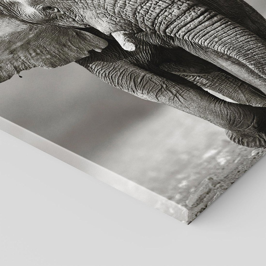 Przemoc i delikatność spotykają się na tym obrazie na płótnie, przedstawiającym imponującego słoń Afryki. Wyraziste szczegóły i realistyczne oddanie charakteru tego zwierzęcia zapewniają niesamowite wrażenie. Idealny dodatek dla miłośników dzikiej przyrody.