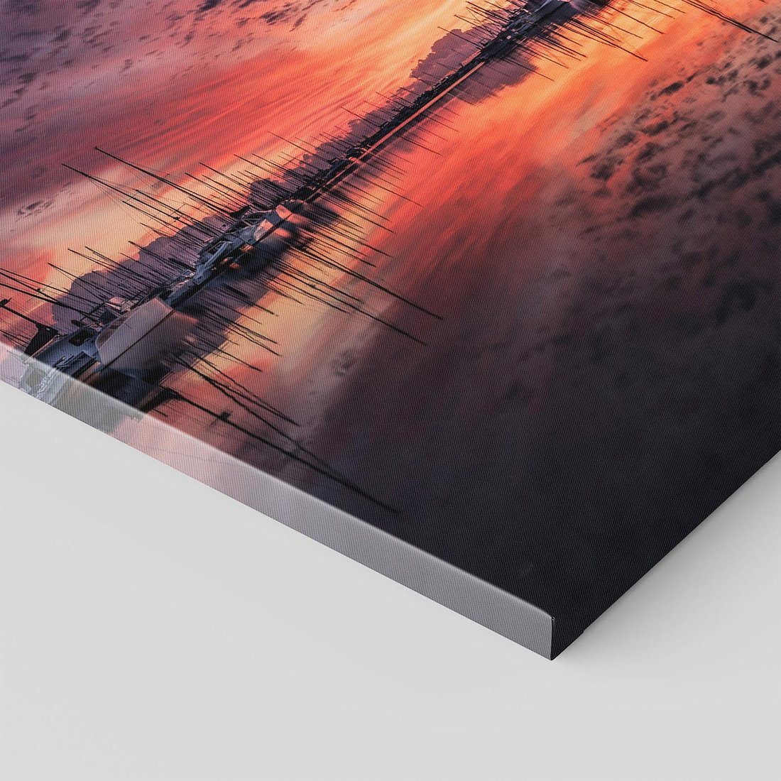 Ten ujmujący obraz przeniesie Cię w magiczny moment zachodu słońca w marinie, gdzie łodzie unoszą się na falach. Ciesz się widokiem odbijającego się światła i atmosfery wieczornego spokoju. Dodaj nutę nadmorskiego uroku i relaksu swojemu wnętrzu tym wyjątkowym dziełem sztuki.