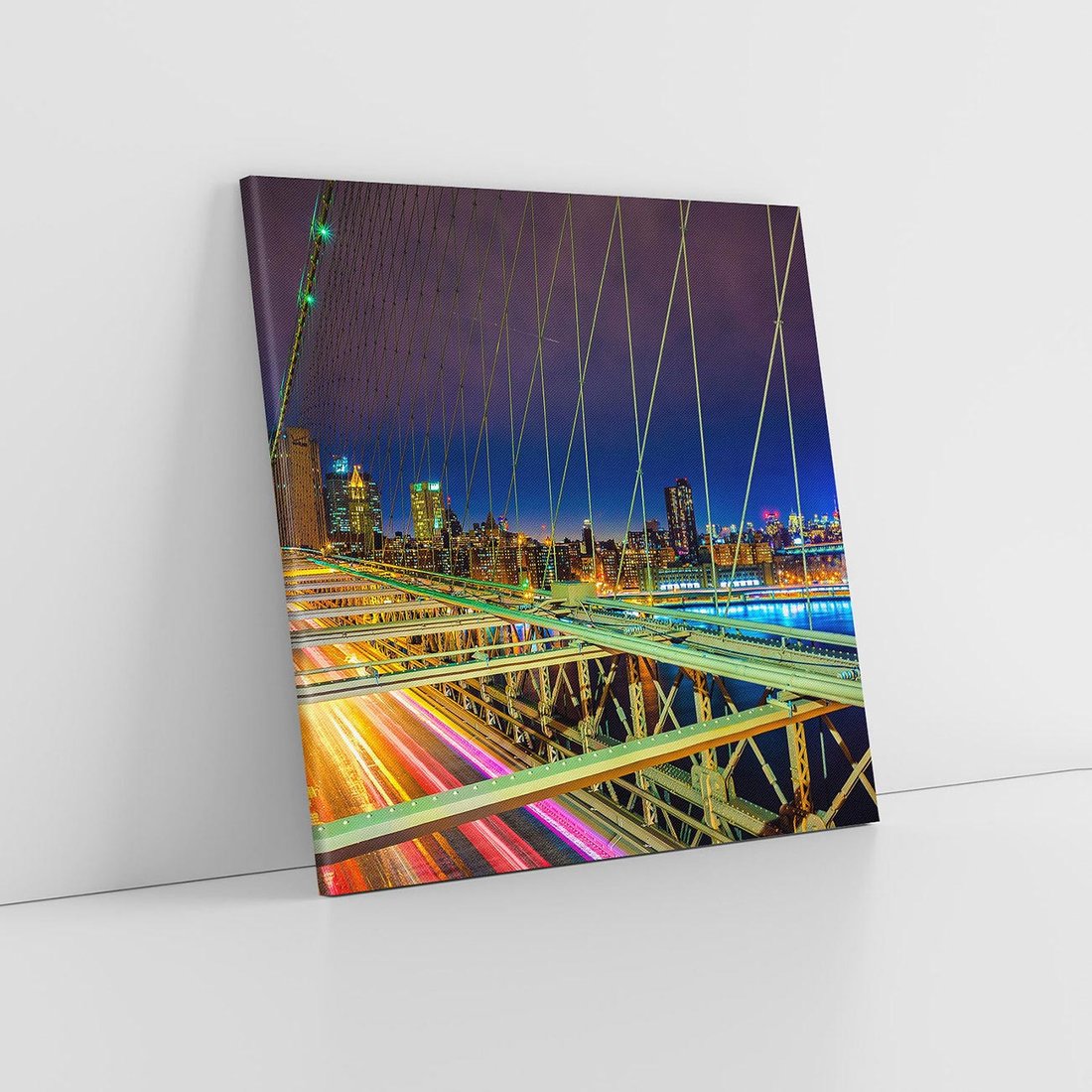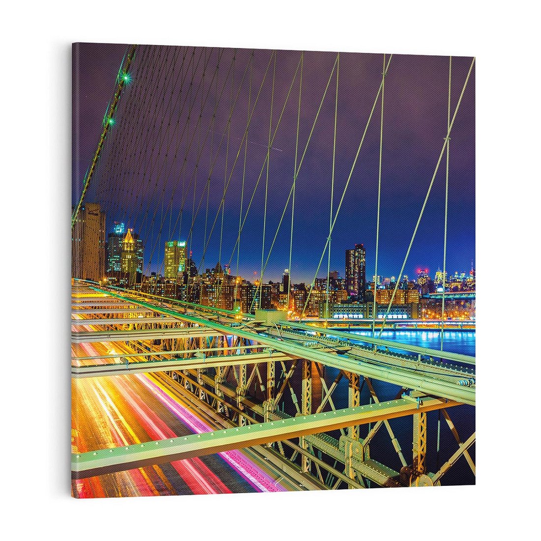 Obraz na płótnie 50x50 - Most w USA - Światła i samochody - most, USA