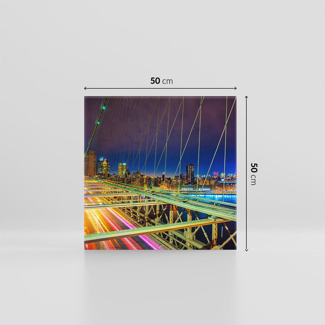 Ten dynamiczny obraz ukazuje most w USA, gdzie światła uliczne i przechodzące samochody tworzą efektowną scenerię. Przenieś się w tętniący życiem klimat amerykańskich miast i dodaj energii i charakteru do swojego wnętrza tym wyjątkowym dziełem sztuki.