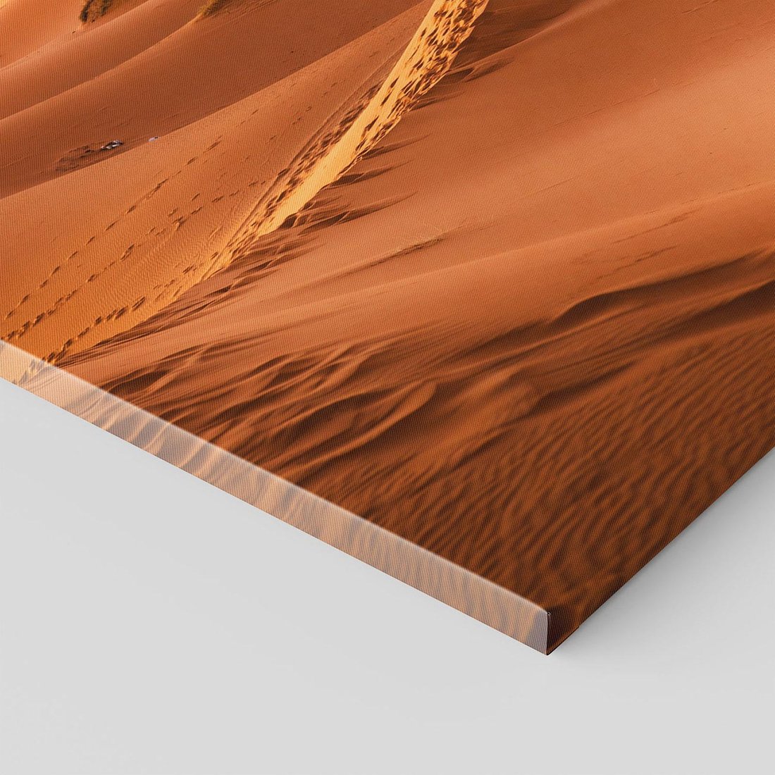 Przenieś się w świat pustyni dzięki temu uroczemu obrazowi przedstawiającemu pustynny krajobraz. Złociste piaski, ośnieżone szczyty i niezmierzone przestrzenie tworzą fascynujący pejzaż. Ta kompozycja dodaje egzotyki i tajemniczości, idealna dla miłośników pustynnych widoków i chcących wprowadzić do swojego wnętrza egzotyczny klimat.