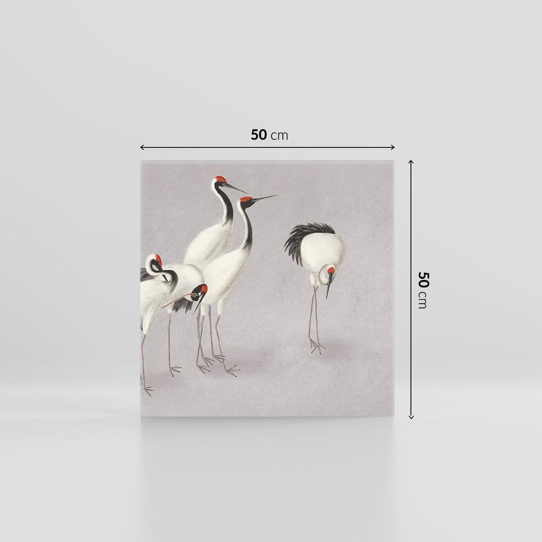 Obraz na płótnie 50x50 - Spojrzenie wstecz w pędzlu - szkic rysunek, japońskie żurawie