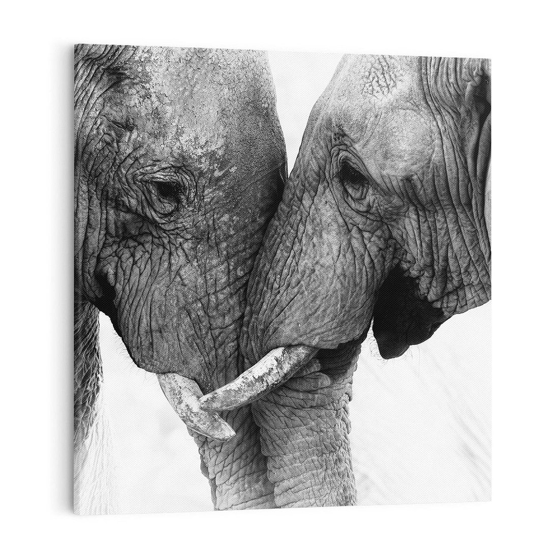 Obraz na płótnie 50x50 - Spotkanie Mądrości - fotografia czarno biała, dwa słonie