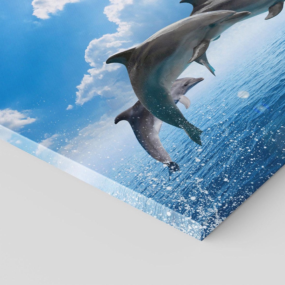 Przenieś się w świat podwodnego uroku dzięki obrazowi na płótnie przedstawiającemu morze i delfiny. Poczuj magię spotkania z tymi majestatycznymi stworzeniami i przenieś się w świat spokoju i harmonii.
