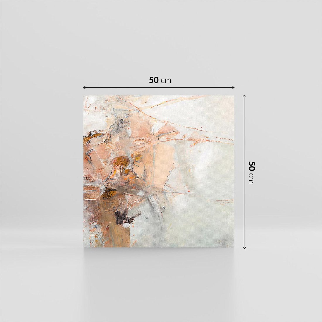 To wyrafinowane dzieło sztuki przyciąga uwagę swoimi subtelnymi teksturami farb i harmonijnymi, jasnymi stonowanymi kolorami, takimi jak beż i brąz. Abstrakcyjne formy tworzą elegancką kompozycję, która emanuje spokojem i klasyką. Idealny wybór dla osób ceniących delikatną estetykę i poszukujących artystycznej inspiracji w swoim wnętrzu.