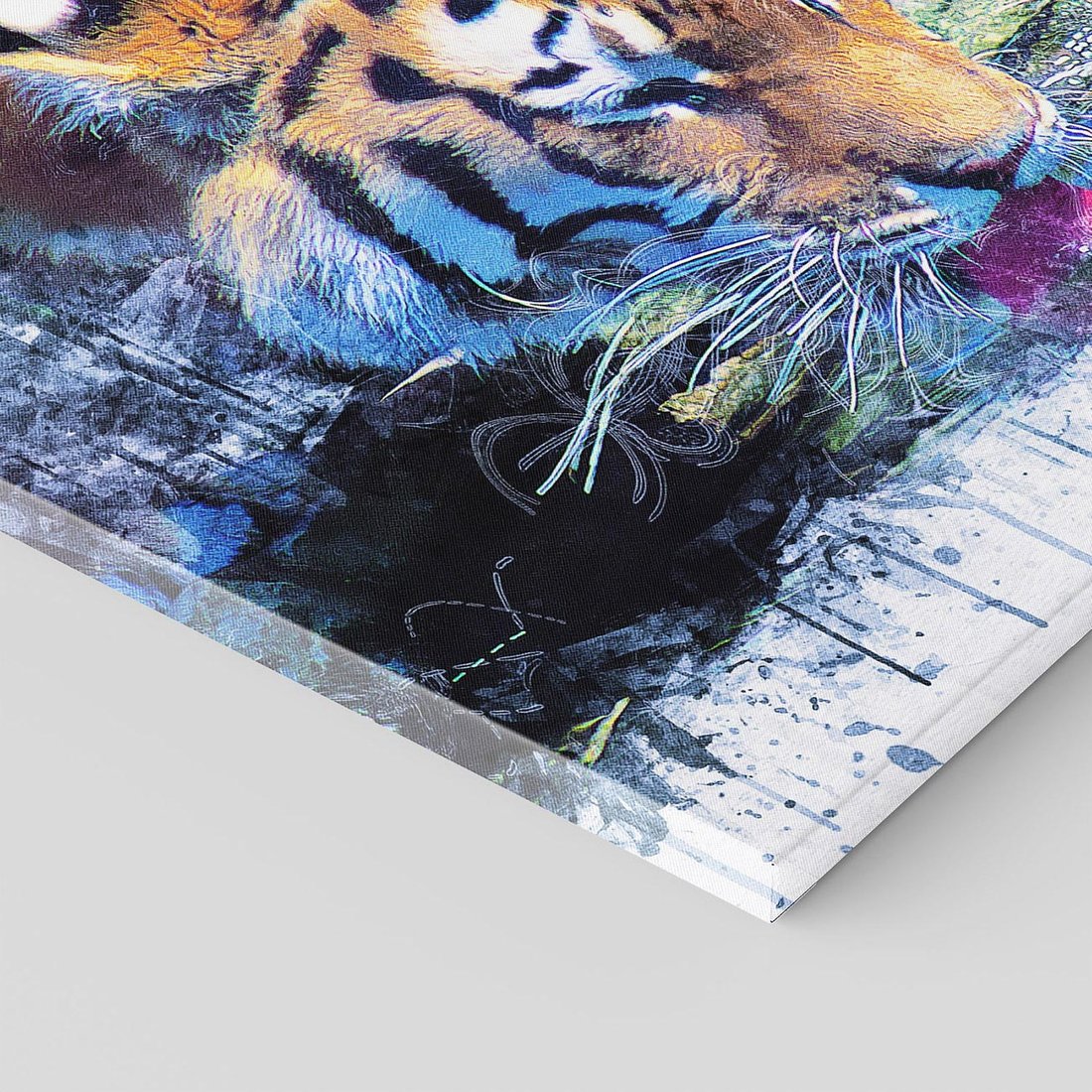 Ten obraz przedstawia majestatycznego tygrysa w wirze abstrakcyjnych form. Intensywne kolory i dynamiczne linie tworzą energetyczną kompozycję, która przyciąga uwagę i dodaje charakteru Twojemu wnętrzu.