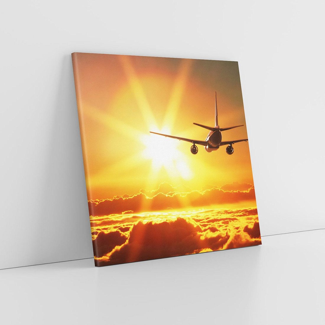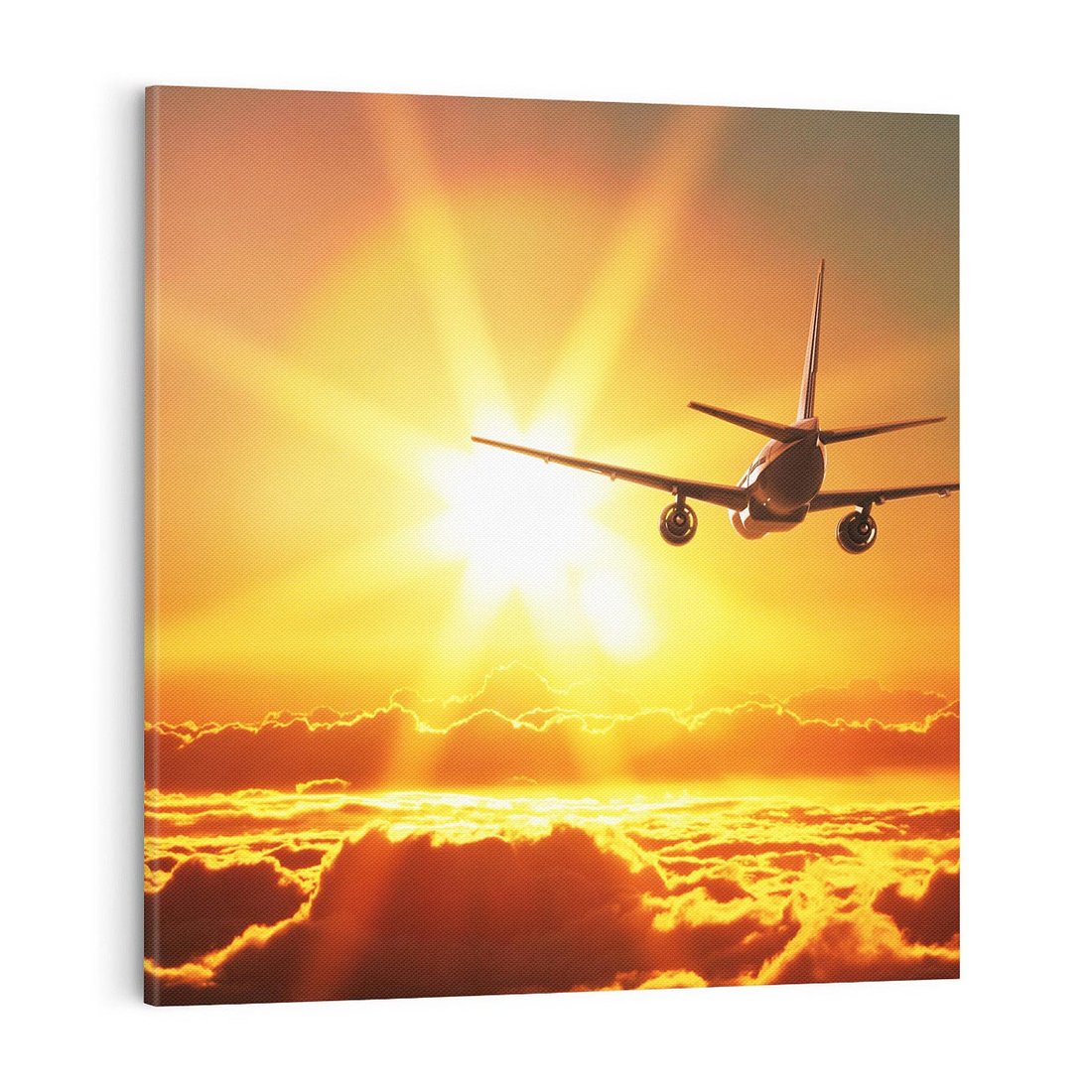 Obraz na płótnie 50x50 - Wolność podróży - samolot, słońce