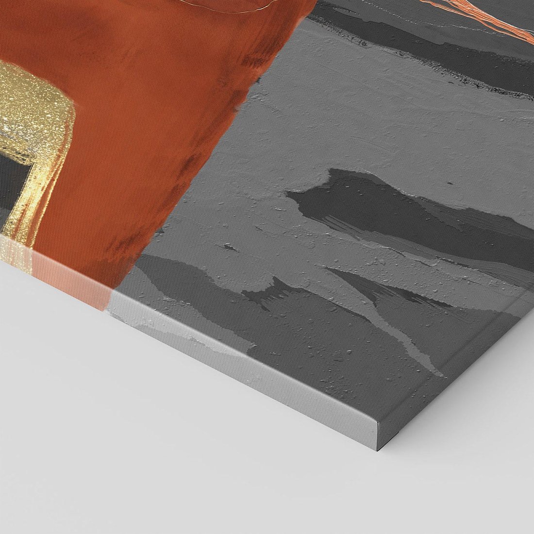 Ta abstrakcyjna kompozycja emanuje energią i ekspresją. Jej dynamiczne formy i kolorowe kontrasty wnoszą oryginalność i wyrazistość do każdego wnętrza. To nowoczesne dzieło sztuki idealnie pasuje do osób poszukujących oryginalnych i inspirujących dekoracji.