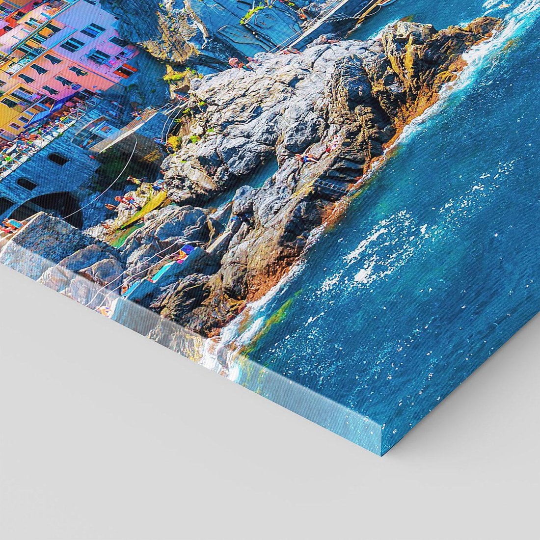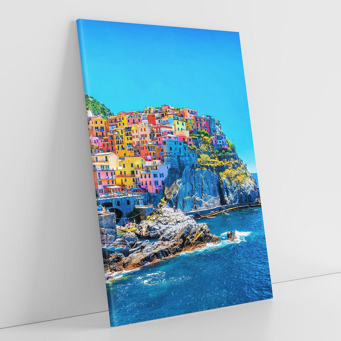 Obraz na płótnie 50x70 - Barwne Wybrzeże - nadmorskie miasto na klifie, kolorowe tęczowe budynki