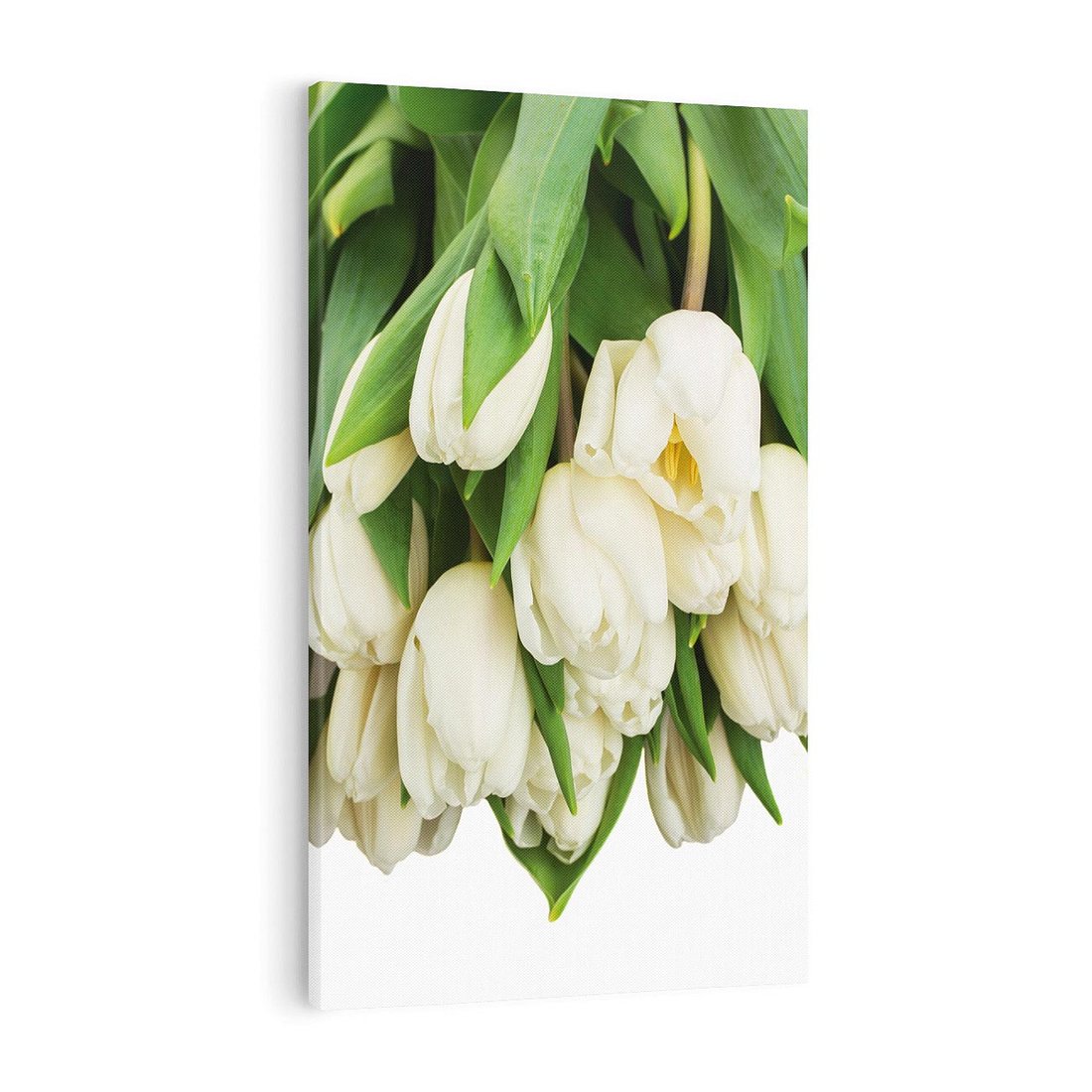 - Obraz na płótnie 50x70 - Białe tulipany w pełnym rozkwicie