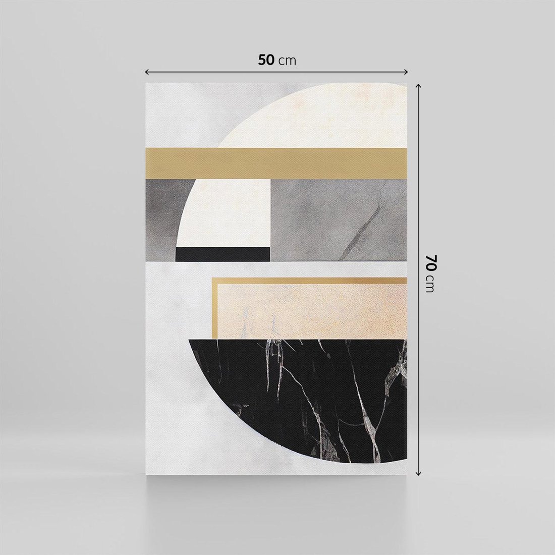 Unikalny obraz, który w nowoczesny sposób łączy geometrię, koła i tekstury szarego marmuru. Subtelne pastele w połączeniu z białymi i czarnymi formami tworzą harmonijną kompozycję, emanującą elegancją i spokojem. To wyjątkowe dzieło sztuki dodaje przestrzeni nowoczesności, zachęcając do odkrywania estetycznych detali.