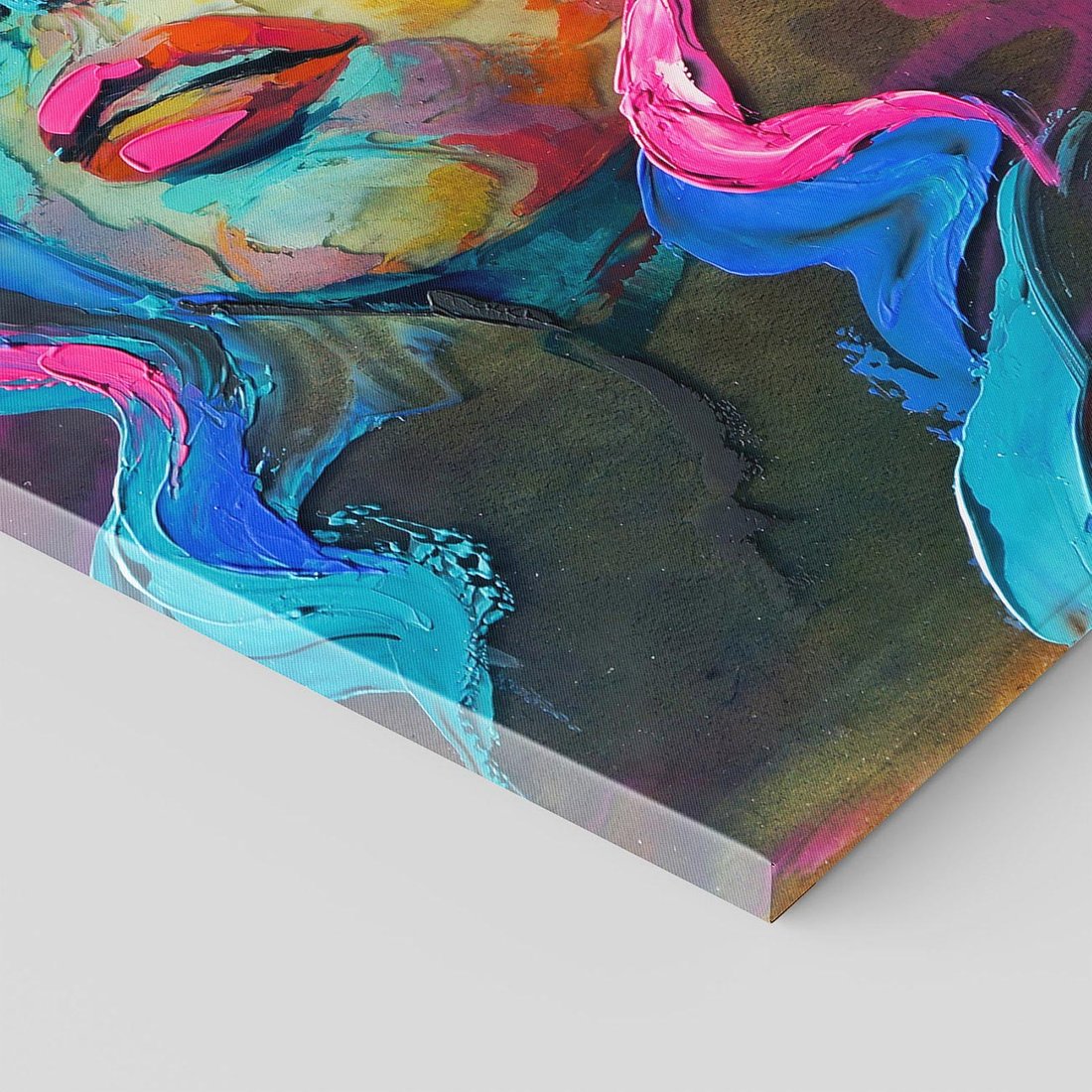 Ta dynamiczna grafika komputerowa odbiega od tradycyjnych portretów i prezentuje abstrakcyjną formę kobiety z bujnymi, intensywnie kolorowymi włosami. Wizualna siła obrazu przypomina olejne malarstwo, co nadaje mu wyjątkowego uroku. To niezwykłe dzieło sztuki pomoże ożywić przestrzeń i przyciągnie uwagę miłośników zarówno sztuki tradycyjnej, jak i współczesnej.