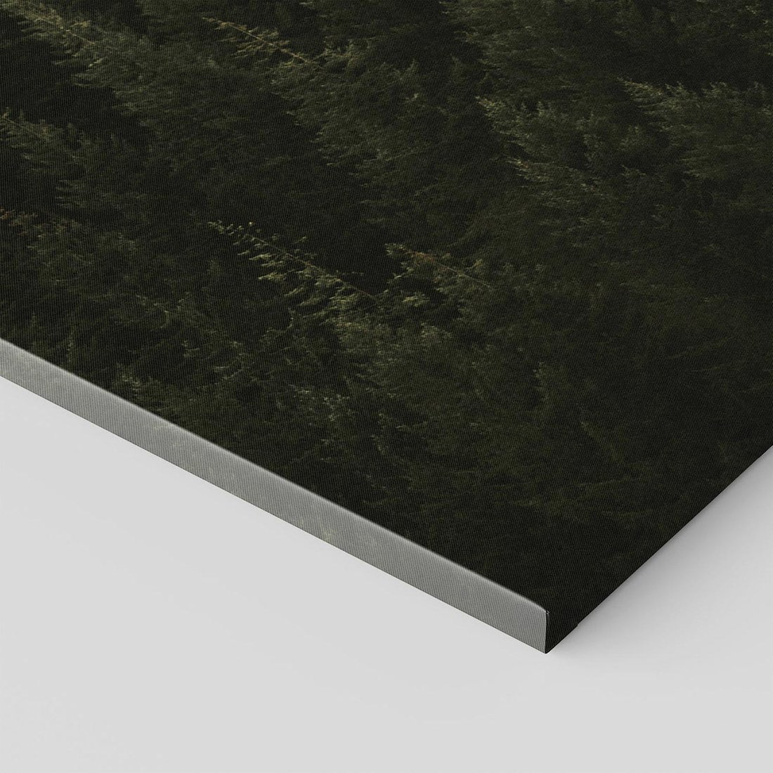 To enigmatyczne dzieło sztuki ukazuje ciemny las iglasty w pełnej okazałości. Jego tajemniczy nastrój i mroczna kolorystyka wprowadzają do wnętrza atmosferę spokoju i refleksji. Stwórz unikalną i zmysłową przestrzeń, dodając ten mistyczny akcent natury.