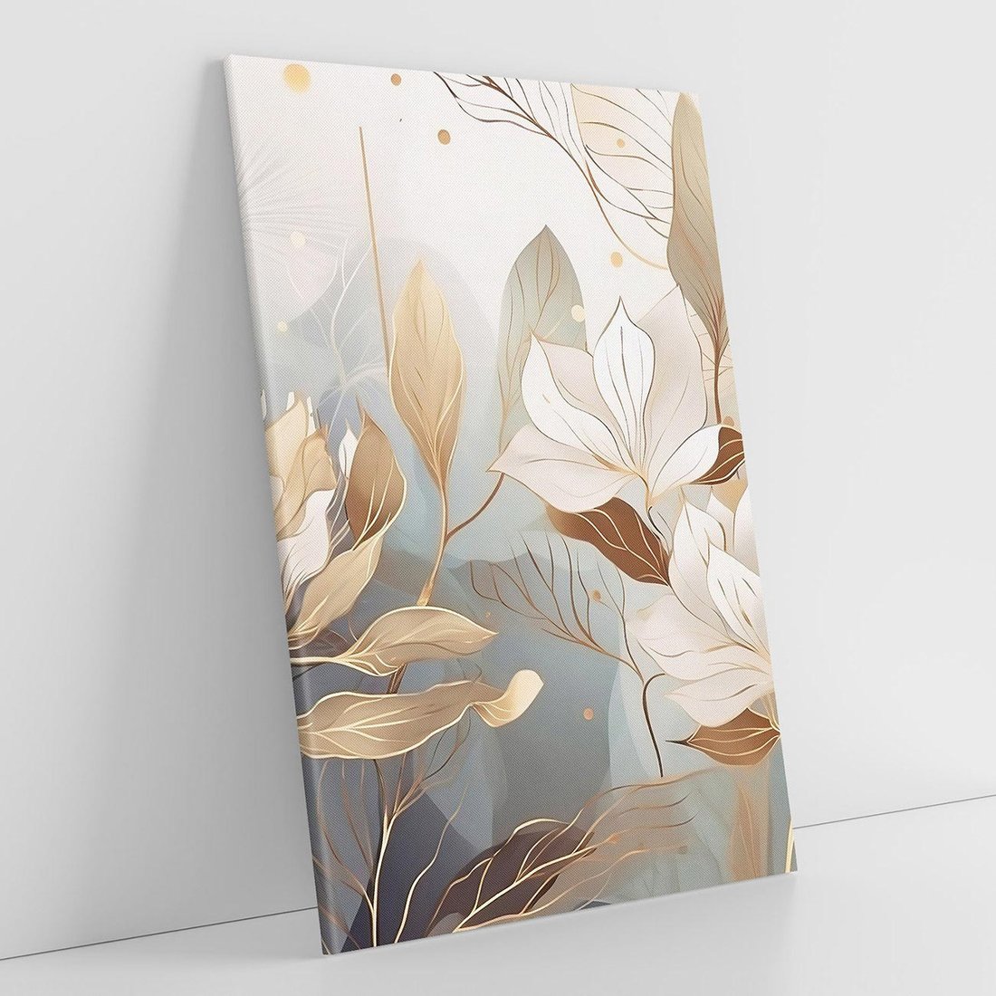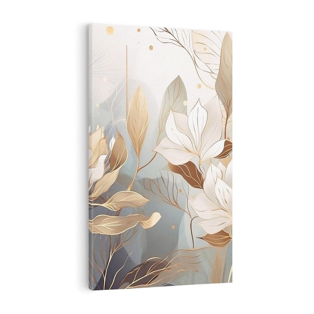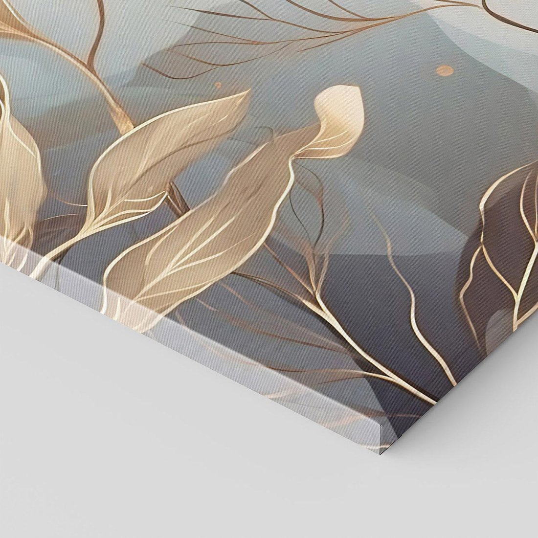 Ta nowoczesna grafika przedstawia złote kwiaty, które rozkwitają w blasku światła. Ich piękno i elegancja doskonale pasują do wnętrz glamour, dodając im wyjątkowego charakteru. To artystyczne dzieło sztuki wprowadza luksusowy akcent do Twojego wnętrza, zachwycając oryginalnością i złotym blaskiem.