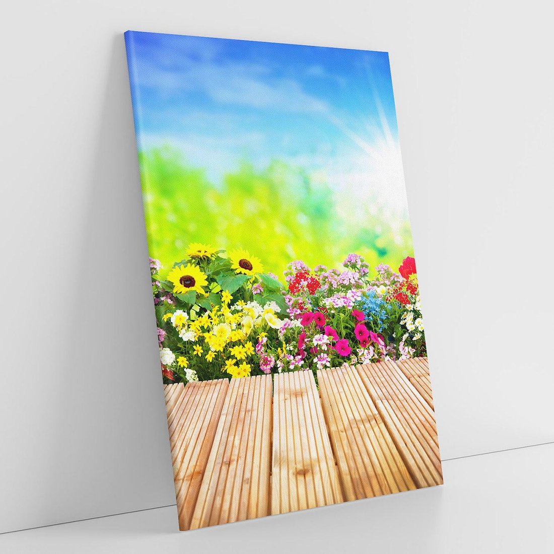 Przywołaj piękno kwiatowego ogrodu dzięki temu urzekającemu obrazowi przedstawiającemu kolorową harmonię kwiatów. Soczyste kolory, różnorodność kwiatów i bujna roślinność tworzą niesamowity klimat. Ten obraz dodaje radości i energii, idealny dla miłośników kwiatów, natury i pełni życia.