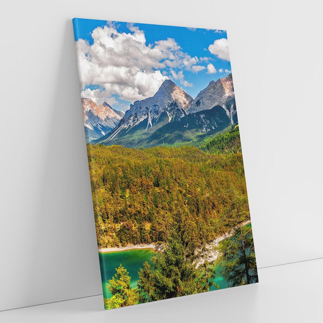 Odkryj harmonię górskiego krajobrazu dzięki temu obrazowi przedstawiającemu las i majestatyczne szczyty. Zielone drzewa, szumiące strumienie i malownicze góry tworzą niezwykłą atmosferę. Ta kompozycja dodaje spokoju i głębokiego podziwu dla natury, idealna dla miłośników górskich pejzaży i wyciszenia w otoczeniu przyrody.